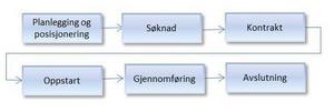 Prosjektprosessen kan visualiseres gjennom følgende faser:
